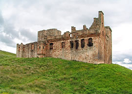 The south tower originally rose three stories, and the south-west tower rose to six stories. This last range contained living quarters. The original entry, on the ground floor, was later blocked up. The castle is said to be haunted by a horseman who enters the castle by the original gate. Outside the castle are the stables, which are reputed to be haunted by the ghost of William Crichton. |