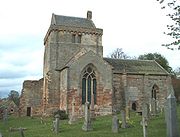 To the west of the village is the 15th century parish church, formerly a collegiate church, was founded by William Crichton in 1449. It is incomplete -- it lacks a nave. The church is still active, however, and contains a quaint churchyard.
