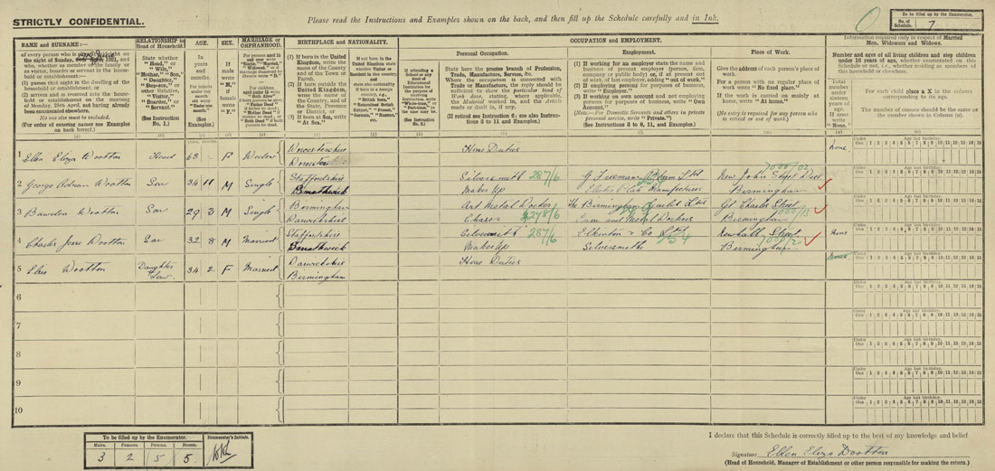 Occupation: Silver Smith Maker Up - Elkington & Co Ltd. Silversmith.Elsie Wootton (Daughter-in-Law)