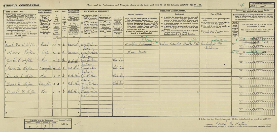 Born: Malvern, [Actually Doddenham] Worcestershire.Gordon Frank Sefton (Son)