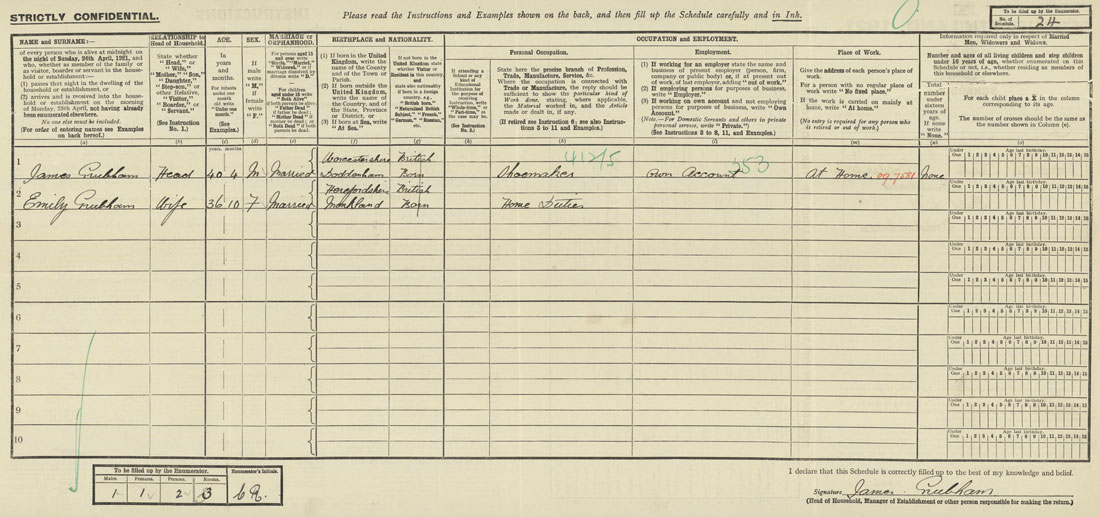 Address: Gold Hill, Doddenham, Worcestershire.James Grubham (Head)