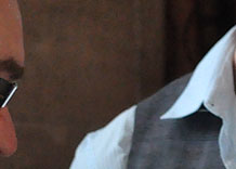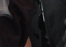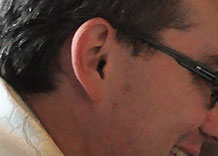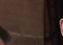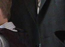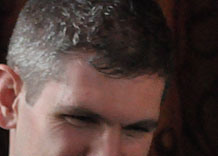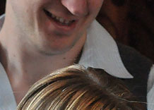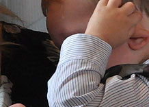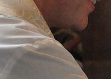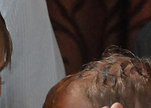 The moment at the font where the Vicar baptises Finley, while his mother, fatherand uncle look on.