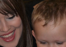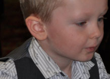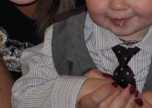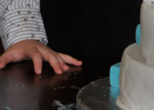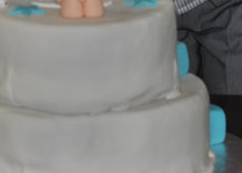 Jodie Varney, helping her godson Riley Holland to blow out the candles on his Christening cake. With his brother Finley Holland looking on.
