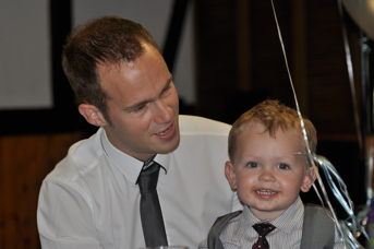 Jodie Varney, helping her godson Riley Holland to blow out the candles on his Christening cake. With his brother Finley Holland looking on.