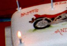 Andrew on his 32nd birthday 25th May, 1995, with his son Jacob.