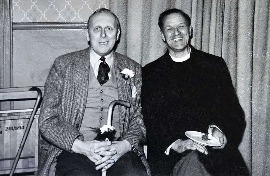 Mark Armstrong, and the vicar, Rev. Oliver Davies, at the Talbot [22nd March, 1958] At the reception for Peter and Eileen Beresford.