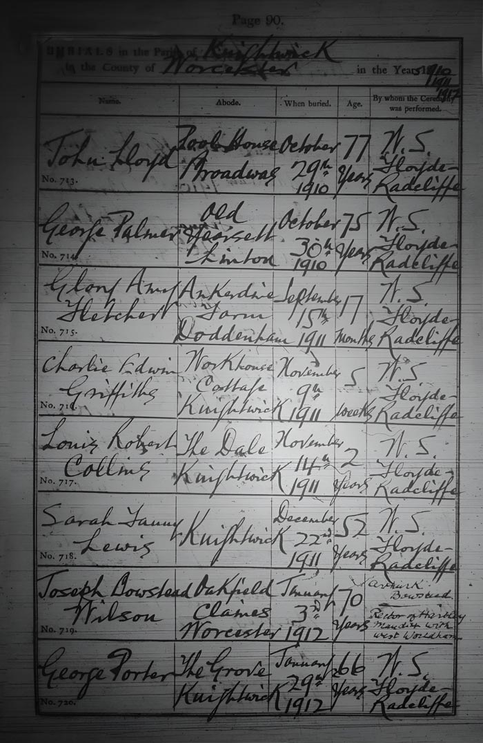 [Joseph Bowstead Wilson was the Rector of Knightwick & Doddenham, and can be seen on many of the earlier pages,