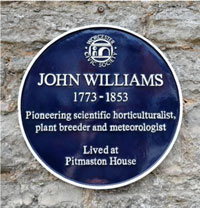 The Civic Society unveiled a new blue plaque at Pitmaston House. The plaque was to celebrate the life of John Williams (1773 - 1853). John Williams was the oldest of eight children, inheriting the family distillery in Tybridge Street. He moved to Pitmaston House in 1804 and lived there for the rest of his life. His many interests included meteorology and he combined this with his passion for horticulture, by experimenting with the microclimate in his conservatory. He contributed papers to the Horticultural Society of London (now the RHS). His work led to the breeding of new varieties of cultivated plants including the Pitmaston pear and Pitmaston Russet Nonpareil apple. Jim Jenner, the present owner of Pitmaston House, sponsored the plaque. Elizabeth Banks, a former president of the RHS, unveiled the plaque.