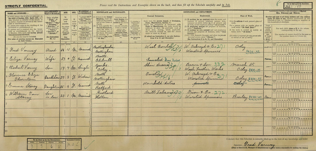 Address: 2, Albion Street, Otley, Yorkshire.*Fred Varney (Head)
