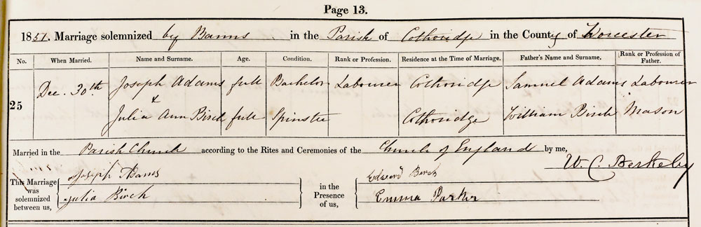 Father's: Samuel Adams [Labourer] and William Birch [Mason]