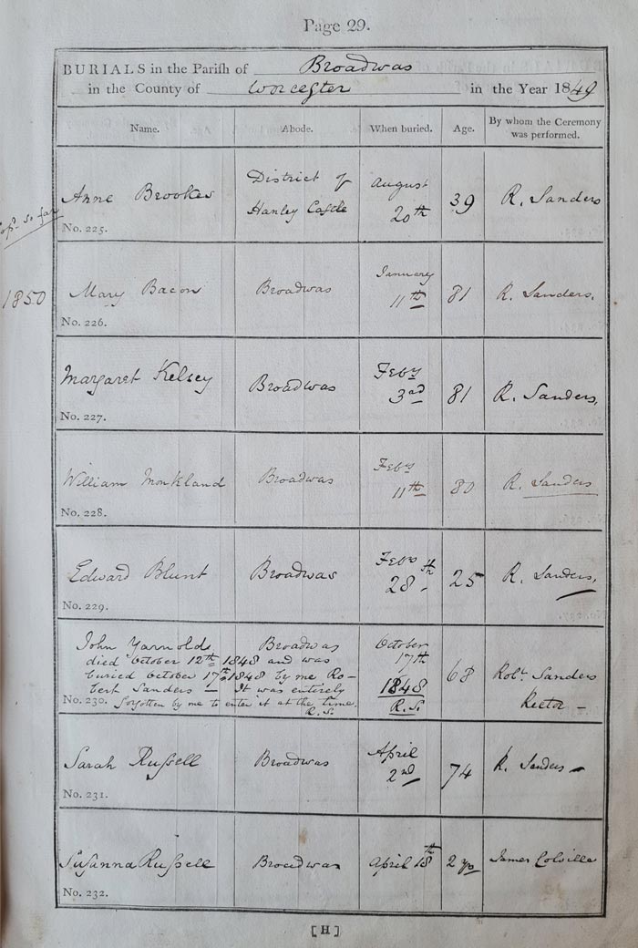 Sanders.228 William Monkland Broadwas. 11 February 1850 80 Robert