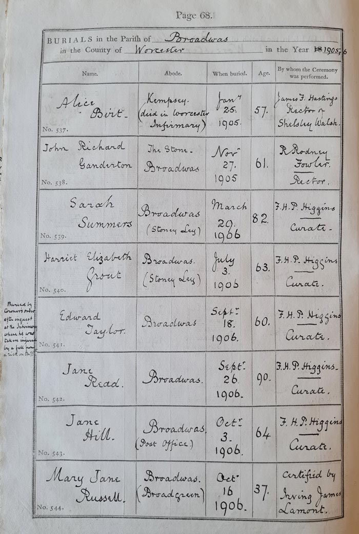 *Buried by Coroner's Order, after inquest, at the Infirmary, where he was taken injured, by a fall