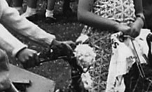 Broadwas Fete, 1956. Judging for the best decorated bike or pram.