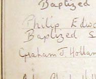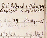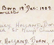 | Relationship to Philip Holland: My Dad, Mum, Sister, Brother and their children John Edward Holland - Born: 19th December, 1909. Doris Eliza (Jones) Holland - Born: 14th May, 1909. Josephine Lucy Holland - Born: Bridgenorth, 5th April, 1939. Graham John Holland - Born: Post Office, Knightwick, 15th March, 1942. Philip Edward Holland - Born: Post Office, Knightwick, 8th October, 1949. Graham John Holland - Married: Belinda Margaret Courtney, 18th December, 1962. Andrew Charles Holland - Born: 25th May, 1963. Ronkswood Hospital, Worcester. Sarah Jane Holland - Born: 3rd February, 1970, Ronkswood Hospital, Worcester. Josephine Lucy Holland - Married: Gunvald Magne Stenersen, 23rd July, 1966. Jan Edward Stenersen - Born: 14th March, 1967, in Denmark. Mark Birger Stenersen - Born: 19th January, 1970, in Denmark. Mark and Sarah were both baptized on the same day, Sunday, 5th July 1970