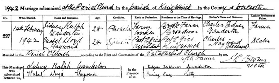 Fathers: Charles Sidney Ganderton, (Farmer) and Charles Hayward, (Dealer, Decease).