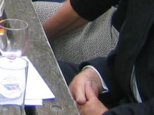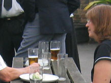 The Mug House, Claines, Worcester, on, Monday, 4th June, 2007. Where every one was invited for refreshments after Roy's funeral. From left Margaret (Ganderton) Loffman, then opposite Margaret is her husband David Loffman and sitting next to David is Margaret's sister Julie Ganderton. Next to Margaret is her cousin Barbara (Bayliss) Brazier, (Barbara's husband William Brazier is standing at the back talking to Margaret's brother Roger Ganderton and his partner Francis Thomas. Behind Barbara is Ian Alcock (Roy and Jennifer's son-in-law, married to their daughter Helen. Next to Julie is her cousin, Mary Bayliss, Barbara's sister. Then Geraldine and Brian Cooper (friends of the family.