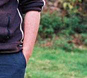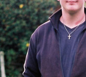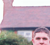 My son, Alex James Edward Holland at the front of the Laurels, in August 2002.