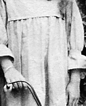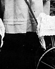 Here is a photograph of Doris Eliza Jones daughter of Lucy (Grubham) Jones and John William Jones (Doris was my mother and married John Edward Holland). Also her cousin Mabel Grubham daughter of Henry (Harry) Grubham and Alice (Baker) Grubham. Lucy and Harry were brother and sister. Mum was two years older than Mabel. I wonder if they based the style of dress on Alice In Wonderland? The house they are standing next to is in a number of photo's I have. I wonder who owned it