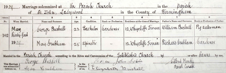 Fathers: William Bushell, Pig Salesman, and Richard Grubham, Gardener.