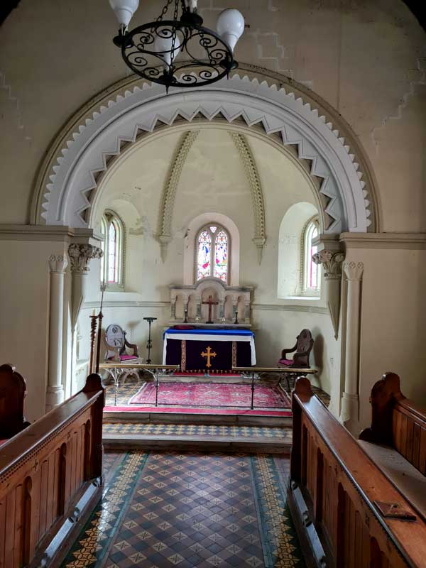 The view showing the Altar at, St John's, Pencombe, Herefordshire.