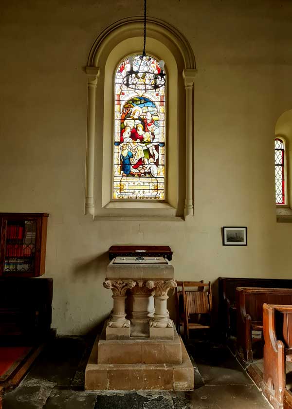 This Victorian font replaced the original Norman one, luckily when the church was rebuilt the old Norman font was saved and stands on the opposite side of the aisle from the pulpit.