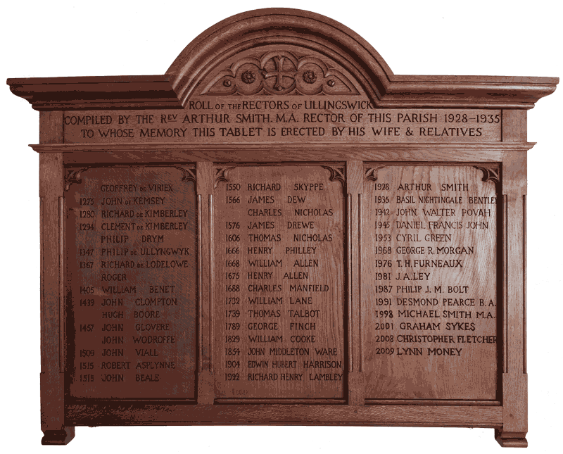The view of the church looking towards the Altar. On the left is a plaque, that has all the incumbents listed.