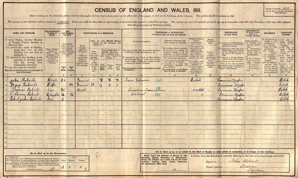 Born: Carnarvon, Llysfaen.Language Spoken: Welsh.