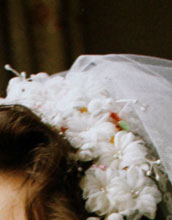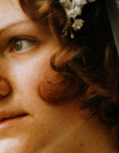 Heather Dawn (Baillie) Holland at the Falcon Hotel, Bromyard, after her marriage to Philip Holland at St. John the Baptist Church, Whitbourne, Herefordshire.
