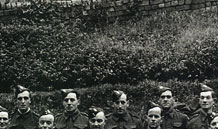K. Company (Knightwick) of the 7th Worcestershire (Malvern) Battalion Home Guard with Company Commander Dr. R. H. Clarke seated in the centre of the third row. The photograph was taken in the Grounds of Woodford House where Roger Clarke lived and had his doctors surgery. The River Teme is behind the photographer and passes by the grounds of the Knightwick Mill to the right of photo and on down stream to Knightsford Bridge and the village where my parents lived at the Post office. My father Ted Holland is second in from the left on the first row and his next door neighbor Ted Morris (with glasses) is sat behind him. Woodford House was the headquarters for K. Company and Dr Clarke their Company Commander had previously served as a Surgeon Lieutenant in the Royal Navy.