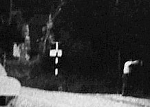 A photo at Knightwick showing the AA box and the AA man's motorbike and side-car. The Telephone Kiosk is standing just off the pavement and against the railing of Alan Morris's garden. One of my father's (Ted Holland) jobs was to clean the inside once a week and empty the money box. I think that the person who can be seen there in this photo, is actually him doing this job. St. Mary's Church and spire can be seen, beyond him.