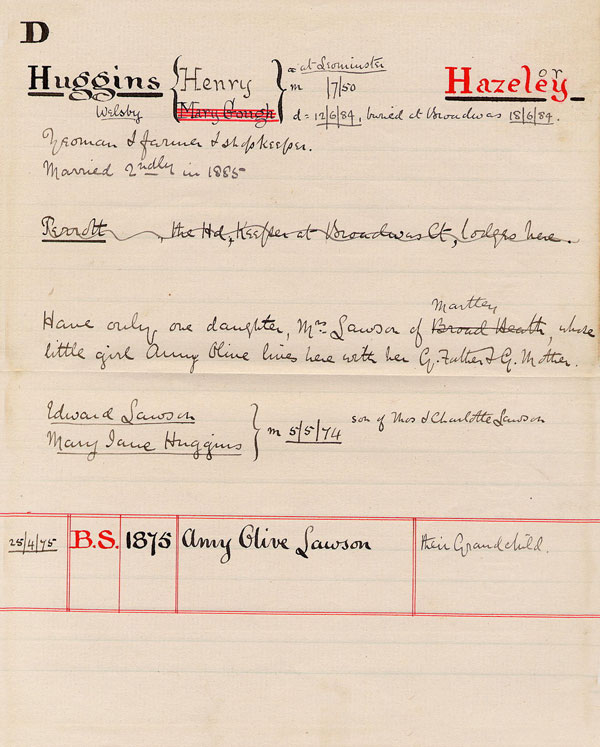 Edward Lawson, married Mary Jane Huggins, 5th January, 1874, Doddenham, Worcestershire.