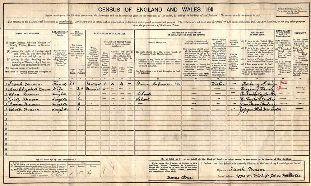 Born: Green Farm, Bosbury, Herefordshire.Edith Mason (Daughter)