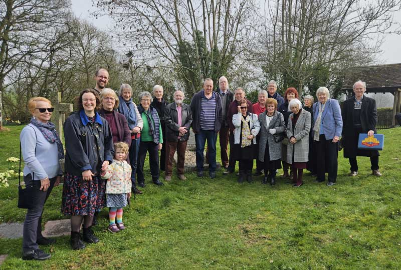 In the photo are Norma Barnett, Liz Roberts, Esmae Roberts, Suzanne Roberts [Cooper], Christopher Roberts, Angela xxx, Jacky Tacey, Mary Hortion [Walker], Bill Tacey, Simon Busk, Peter Walker, John Hammond, Shirley Jones, Jill Hammond, Eileen Evans [Icke], David xxx, Sarah Bamber [Foot], Suzanne Owen, Rev. Jennifer Whittaker, Gwyn Whittaker & Doug Whittaker. [Also there but not in photo were, Helen Walker and myself, Philip Holland]