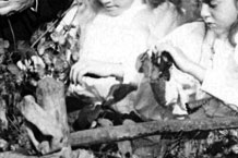 Picking hops in to the crib at Knightwick, JBW and his three daughters.
