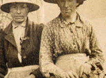 Emma Smith, Granny James and others, picking the hops at Ankerdine Farm.