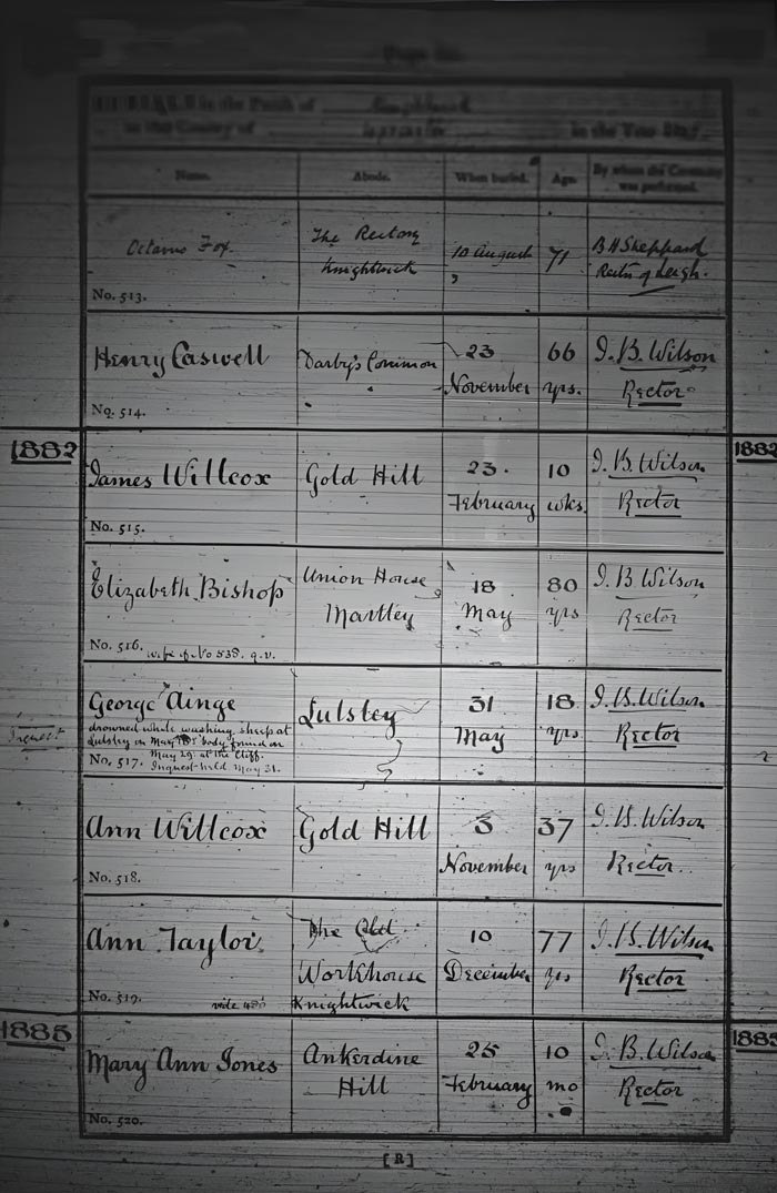 Worcester Chronicle 3rd June, 1882. Found drowned - The body of George Ainge, who was accidentlly