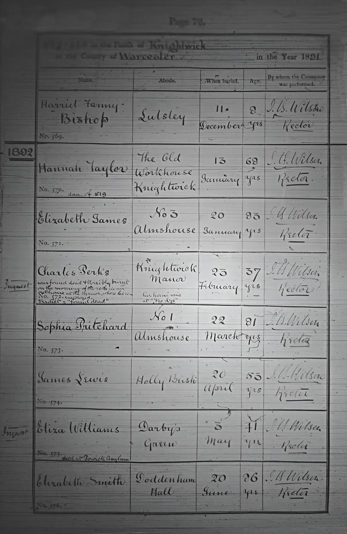 | *[Charles was found dead & possibly burnt, on the morning of the 10th, in an out-house at the Manor, where he was employed. Inquest verdict, found dead] |