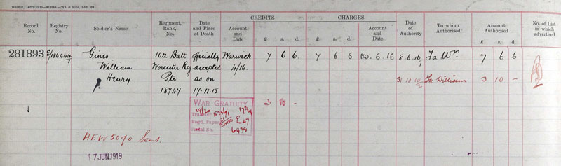 | William Gines, married, Eliza Ellen Mills, in 1894, Martley Reg. Their children were:- William Henry Gines 1896 - 1915 Charles Arthur Gines 1897 - 1964 John Gines 1900 - 1956 Leonard Christopher Gines 1903 - 1978 Frances Rosina Gines 1905 - 1989 Sidney George Gines 1907 - 1982 Name: William Henry Gines Birth Place: Knightwick, Worcestershire. Residence: Knightwick Death Date: 17 November, 1915. Death Place: At Sea Enlistment Place: Worcester Rank: Private Worcestershire Regiment Battalion: 10th Battalion Regimental Number: 18747 Type of Casualty: Died Theatre of War: At Sea ![]() ![]() Only a few days after the journey transporting the King, the HMHS Anglia was sunk. The Anglia was carrying 13 officers and 372 other ranks when, just after midday on the 17th November 1915 about a mile east of Folkestone Gate, it struck a mine that had been laid by the German U-boat, UC-5. On 17 November 1915 Anglia was returning from Calais to Dover, carrying 390 injured officers and soldiers. At around 12:30 pm, 1 nautical mile (1.9 km) east of Folkestone Gate, HMHS Anglia struck a mine and sank in fifteen minutes. The nearby torpedo gunboat HMS Hazard helped evacuate the passengers and crew. Despite the assistance of the nearby collier Lusitania, 134 people died in the sinking. In October 2014, there were calls for the wreck of the ship to be designated a war grave and protected under the Protection of Military Remains Act, 1986. In March 2017 the wreckage of the HMHS Anglia was declared an official war grave, making it illegal to remove or disturb any human remains at the wreck site. ![]() |