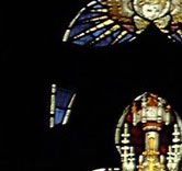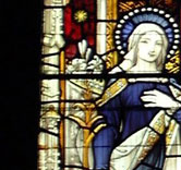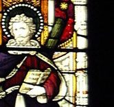 This window has St Mary and St Andrew in two seperate apertures in the wall. Above them was the Steeple containing the Bells that were rung before Church services.