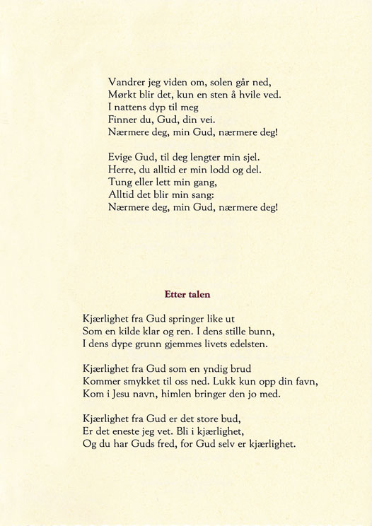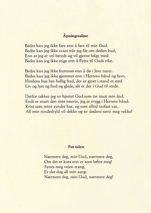 During the service Bjørn Vida's partner Lene, sang two solos, one a special song about the area, called 'Måselv song'