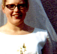 The newly married Josephine Stenersen, outside Whitbourne Village Hall, Herefordshire.