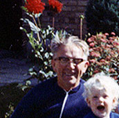 A lovely photograph of Jan with his Norwegian grandparents Birger and Ester (Pedersen) Stenersen. Jan's grandparents lived in Øverbyg, in the far north of Norway. Here they are all together in the garden of their son and daughter-in-law, Gunvald and Josephine.